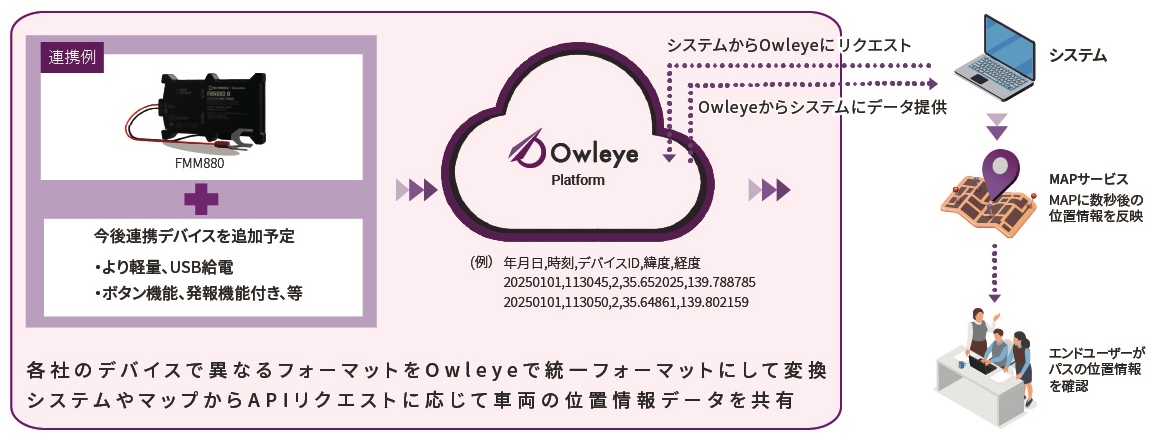 不要な機能を省き、車両の位置情報を既存システムやMAPにAPI連携で提供する動態管理プラットフォーム
